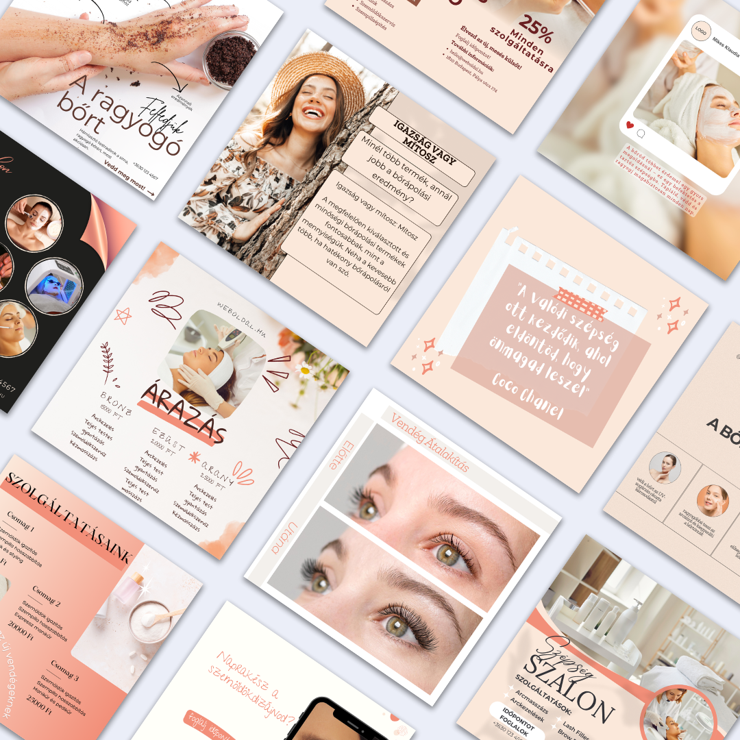 Emeld a szalonod online jelenlétét profi, azonnal használható Canva posztcsomaggal.